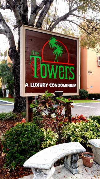 After serving many years as the silent sentinel at the main entrance to our building complex, the Towers Condominiums sign was in dire need of being replaced or rejuvenated. The cost of purchasing a new custom made sign similar to what we had was astronomical so it was decided to give the sigh a full face lift,
