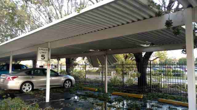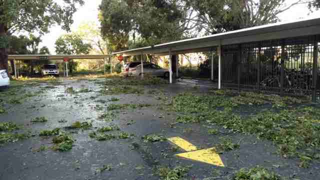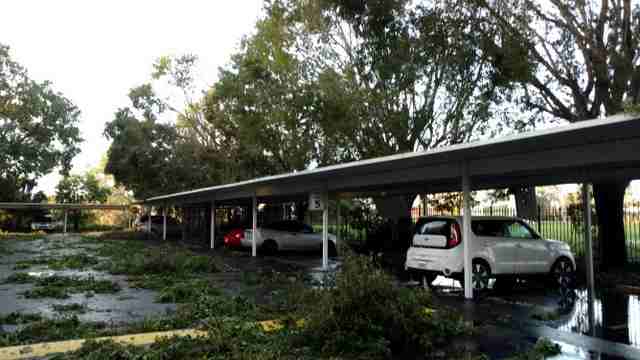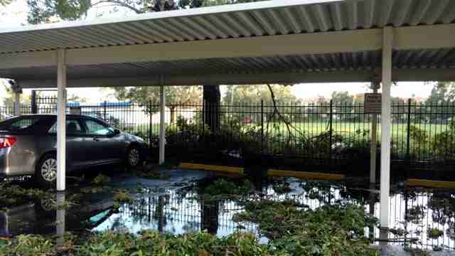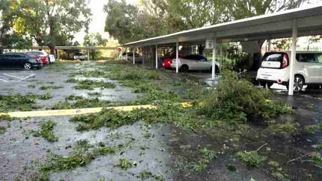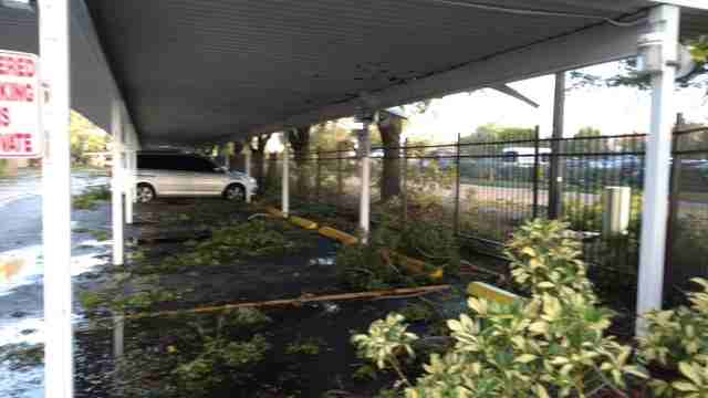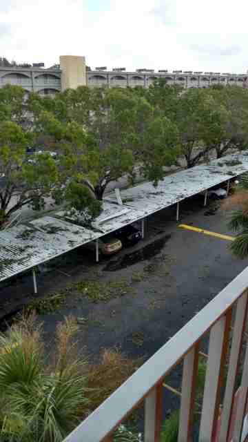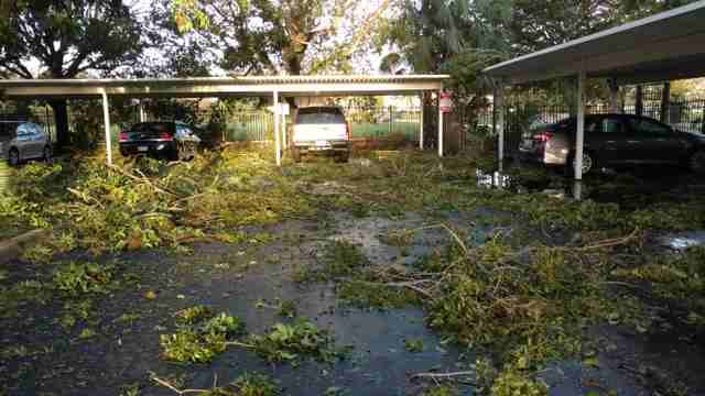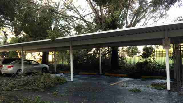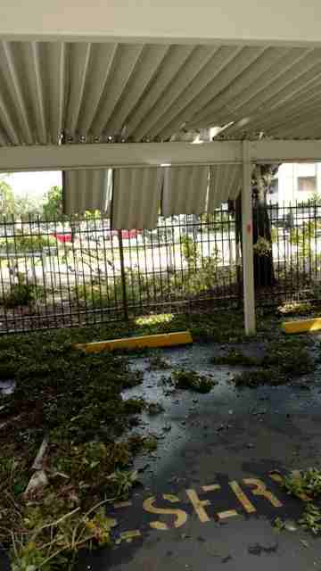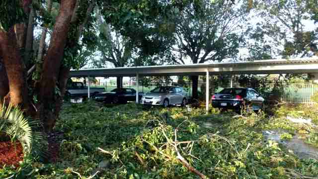 The assessment is as follows. The pool is closed; the gas grills are not in service; the roof is strong however two areas had the fascia affected and we have already contracted the immediate repair with Crowther Roofing to ensure no units will be affected by water from rain; the light fixtures and other common area electrical is inspected, and broken fixtures are being replaced for the safety of our residents; the sprinkler system is turned off until damaged foliage is removed; the elevators will be serviced upon first appointment available; the carports will be repaired upon receiving estimate and insurance proceeds; the grounds with all the damaged foliage will be removed by tree service and landscapers. Any damage to the inside of individual units will require the unit owner to contact their insurance companies to make a claim. Any repairs the Association can do will be after the owner contacts their insurance company.