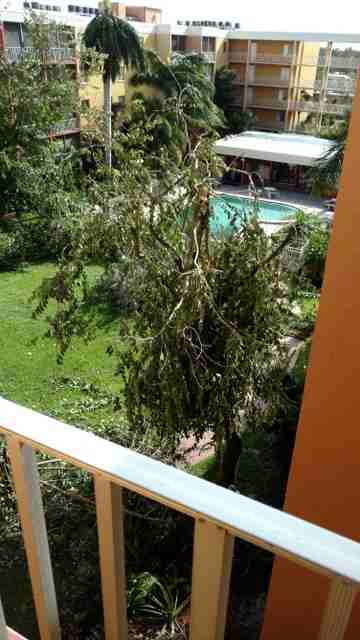 After the hurricane there were only two residents, one of them a board member, who helped clear the parking lot and walkways. During this time there was no power, cell phone service was sporadic, Comcast internet was down or sporadic, and a curfew was placed on the city of Ft. Myers from 8:30 at night until 7:30 in the morning.