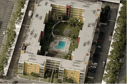 Aerial view of the building: