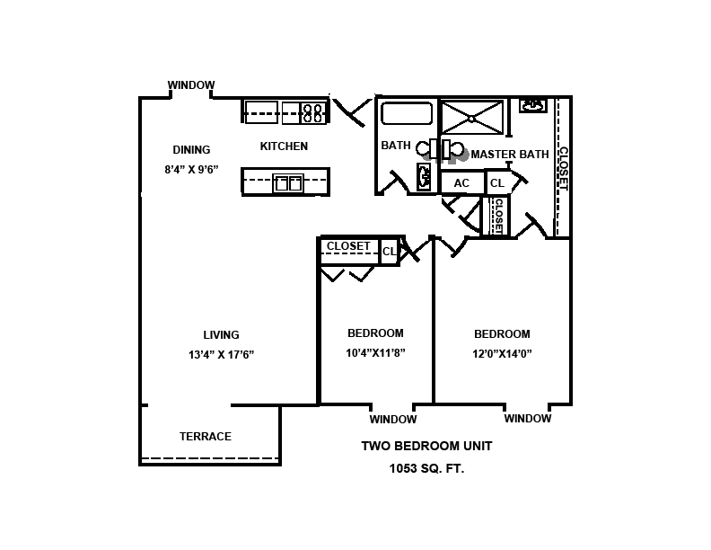 The following drawing shows floor plans for one and two bedroom units. Efficiencies are also available.