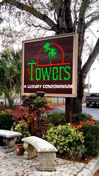 After serving many years as the silent sentinel at the main entrance to our building complex, the Towers Condominiums sign was in dire need of being replaced or rejuvenated. The cost of purchasing a new custom made sign similar to what we had was astronomical so it was decided to give the sigh a full face lift,